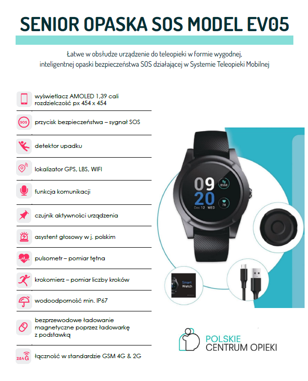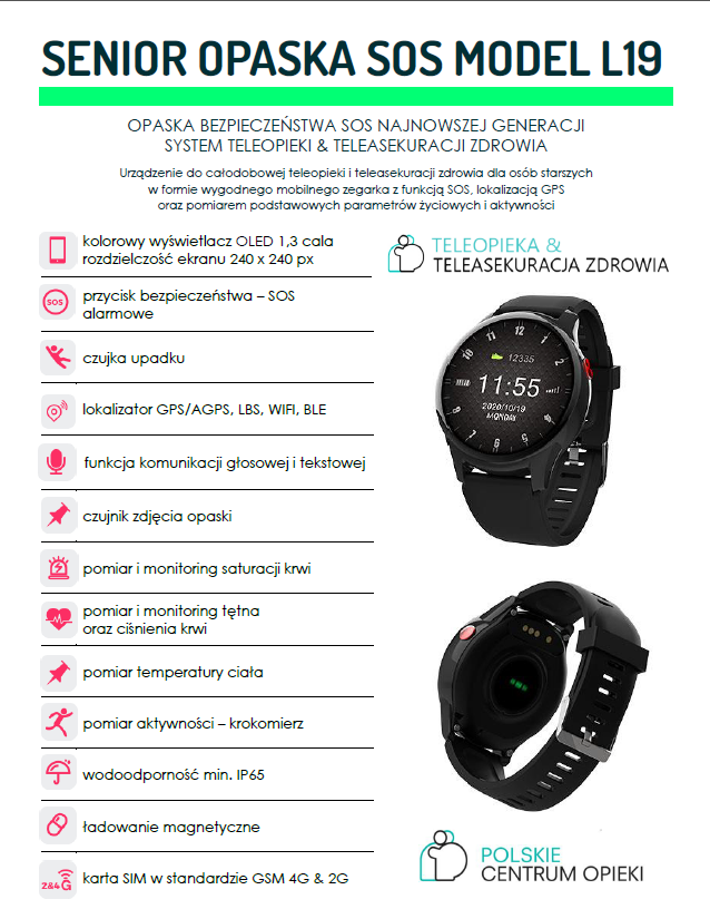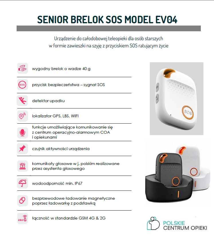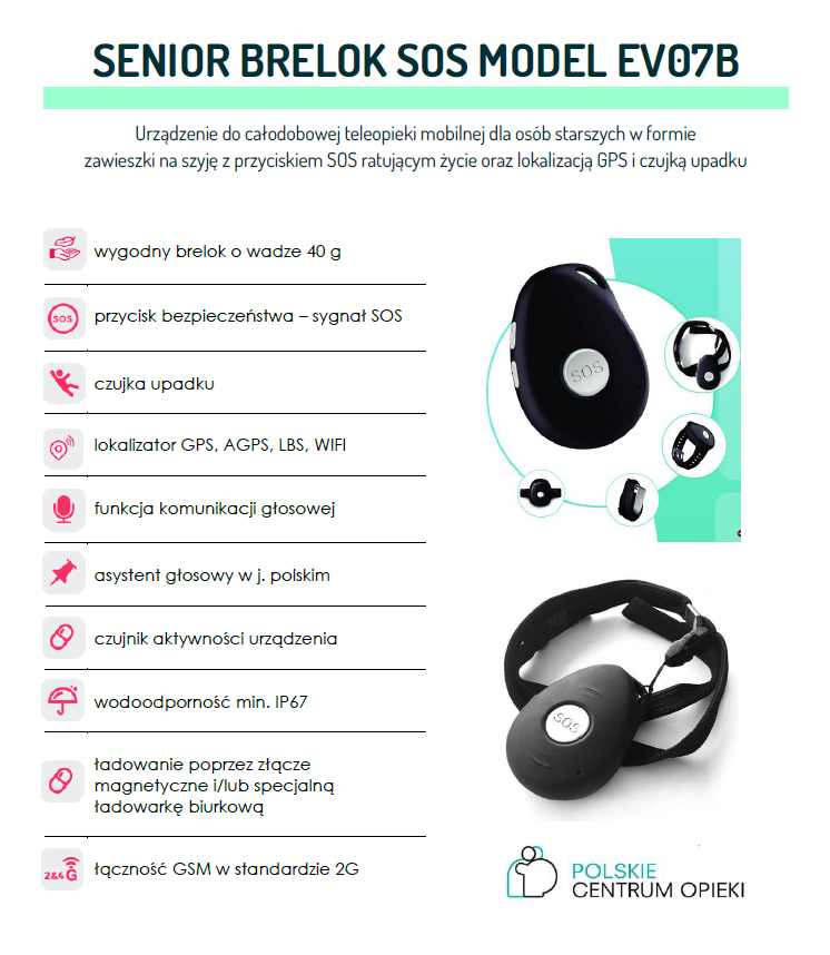 - W przypadku zagrożenia życia lub zdrowia osoba posiadająca opaskę lub brelok bezpieczeństwa naciska przycisk SOS lub dodatkowo w razie upadku opaska/brelok automatycznie wysyła sygnał alarmowy SOS z dokładną lokalizacją miejsca zdarzenia dzięki modułowi GPS.